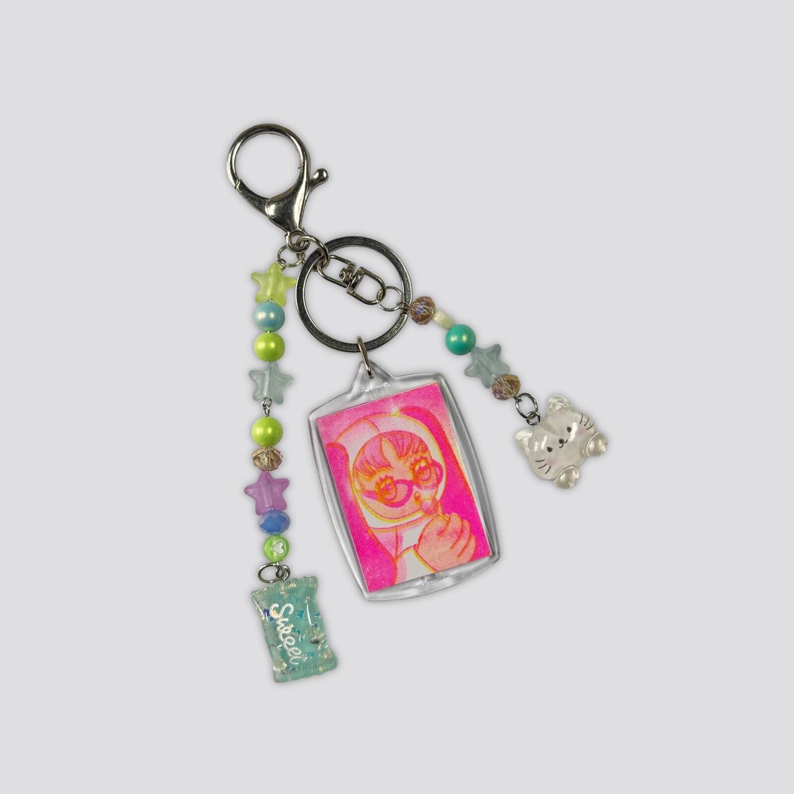 LLavero de Aoi Club con ilustración impresa en risografía