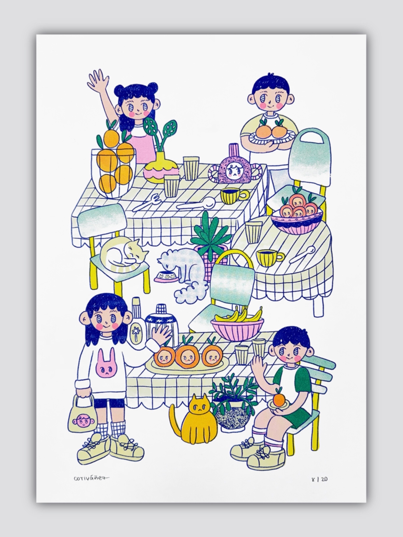 Ilustrado por cotiyanez Risografía de 4 tintas Edición de 20 copias firmadas Tamaño A3 (29,7 x 42 cm) Olin Rough Hight White 150 gr