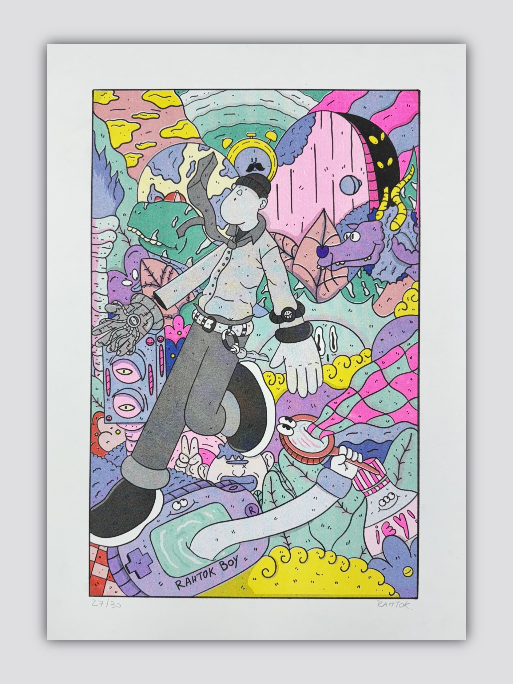 Ilustrado por Rahtok Risografía de 6 tintas Edición de 30 copias firmadas Tamaño A3 (29,7 x 42 cm) Starwhite Archiva Smooth 148 gr